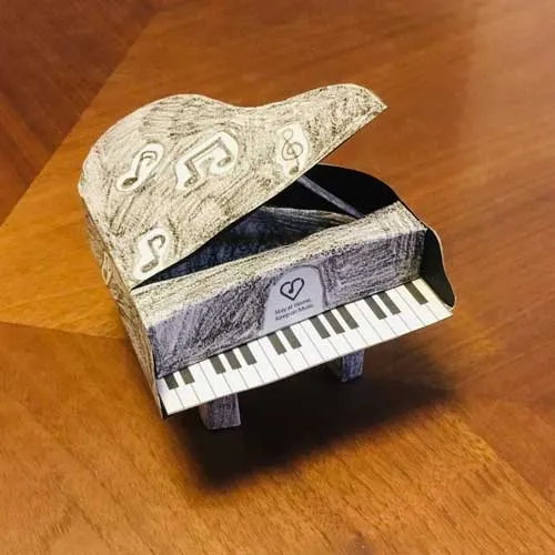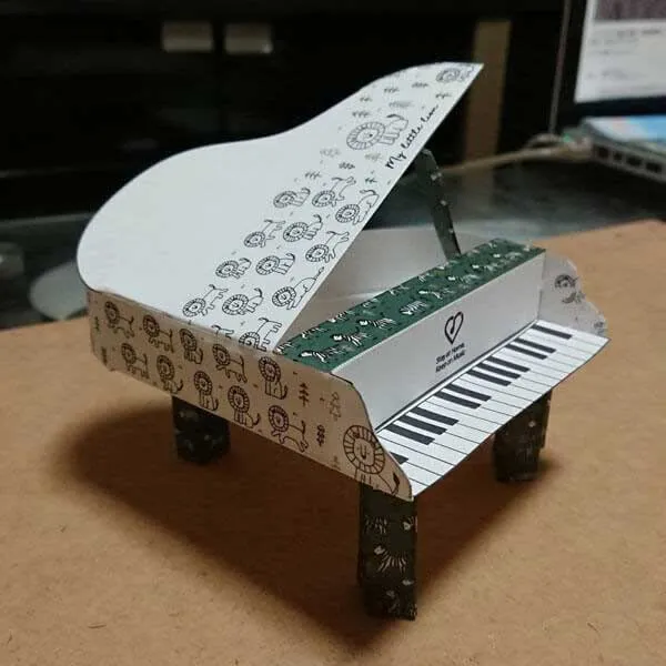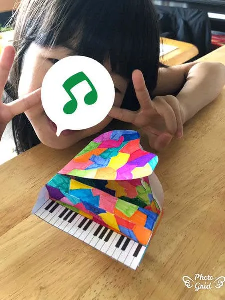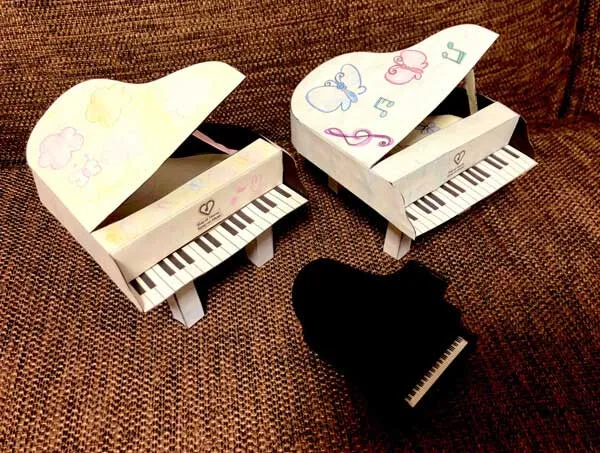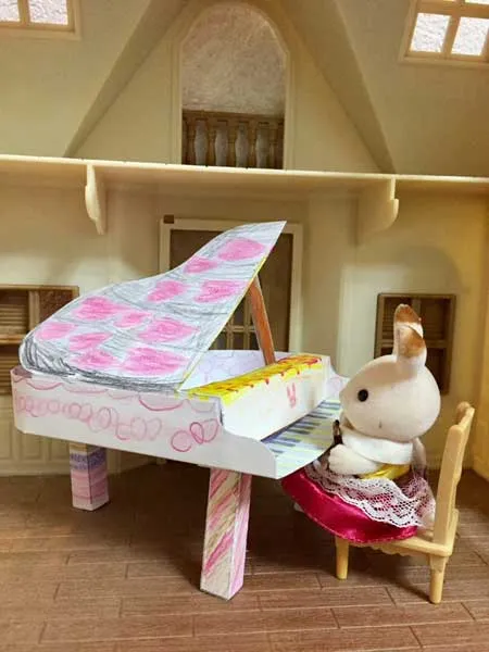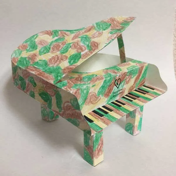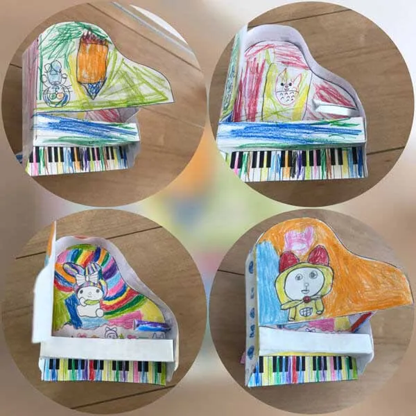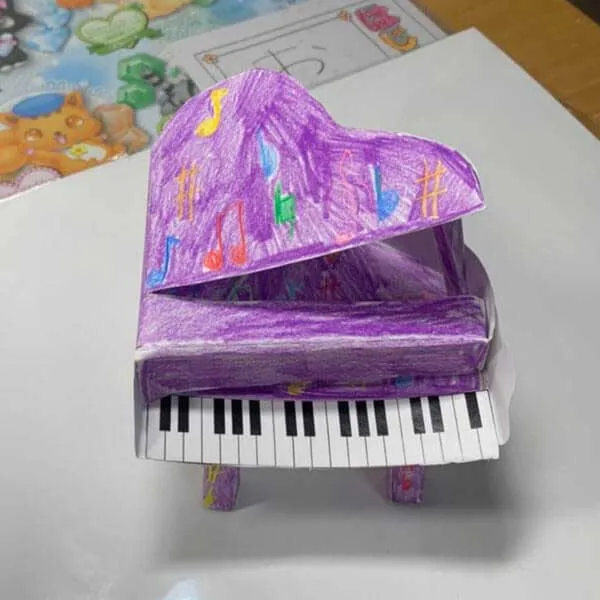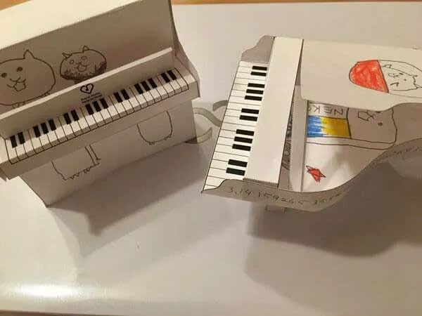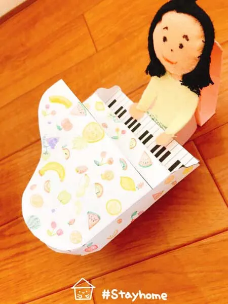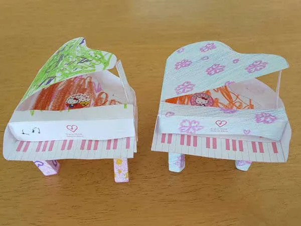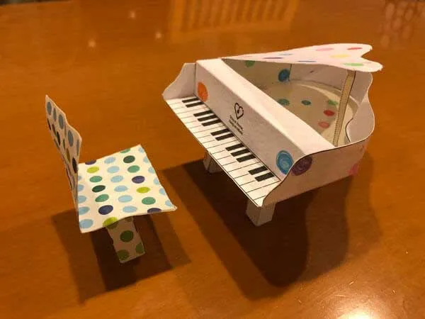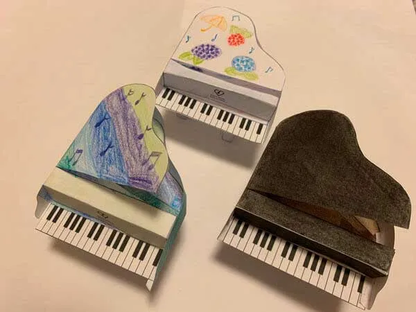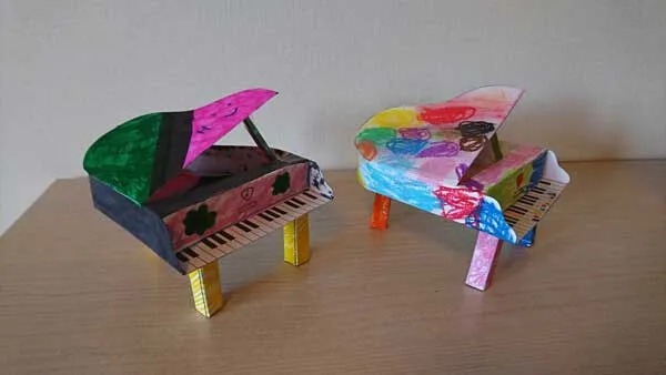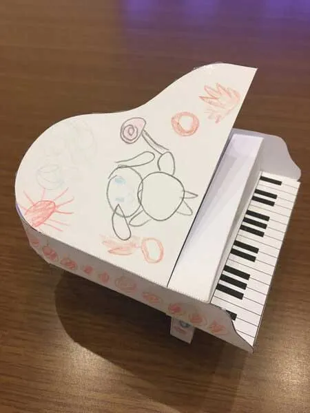 黒色をあらかじめ印刷してから作られたのですね!効率的な大人のやり方♪久々の工作いかがでしたでしょうか。アップライトピアノの工作もありますので、ぜひトライしてみてください!(スタッフ・シロクマより)