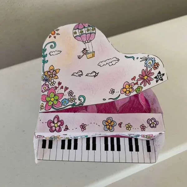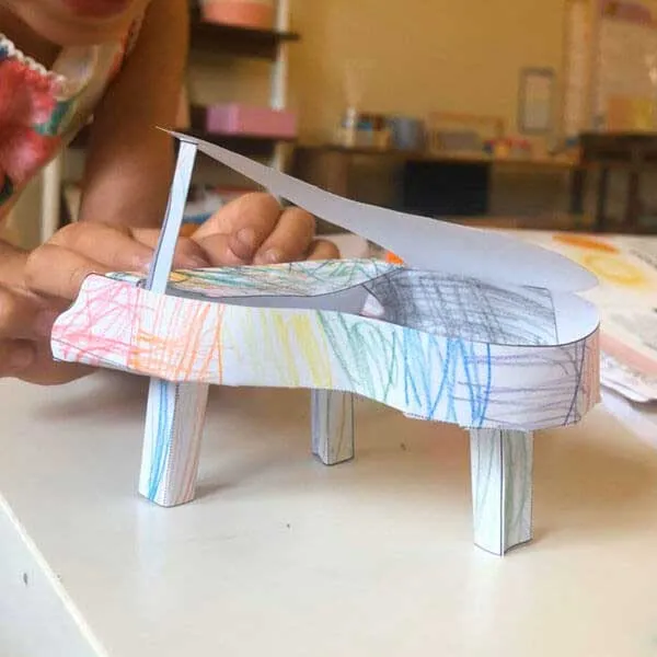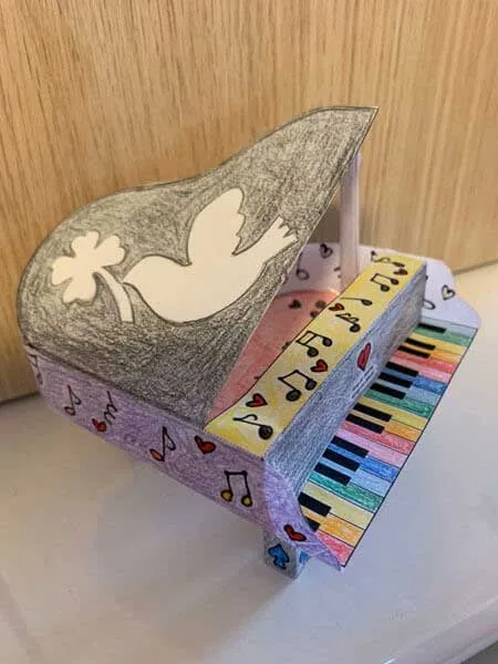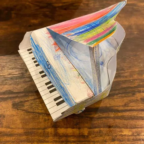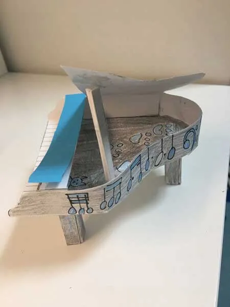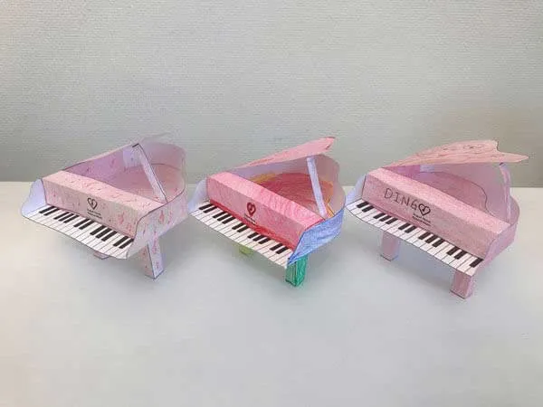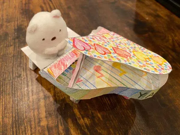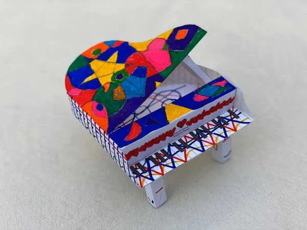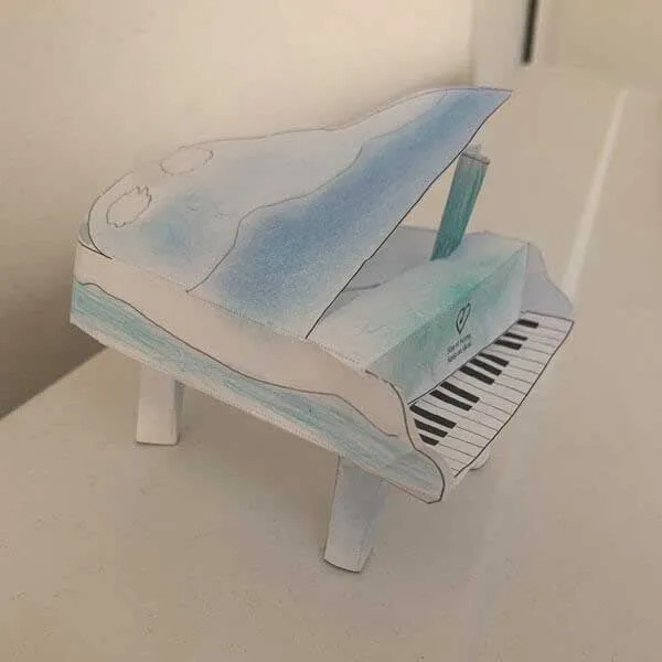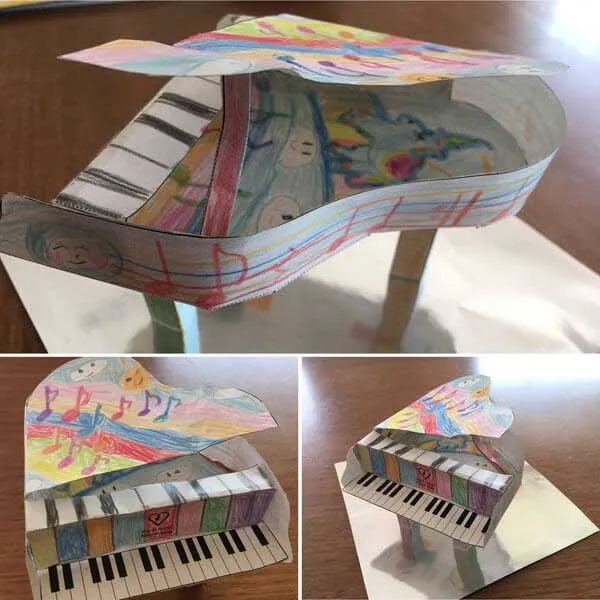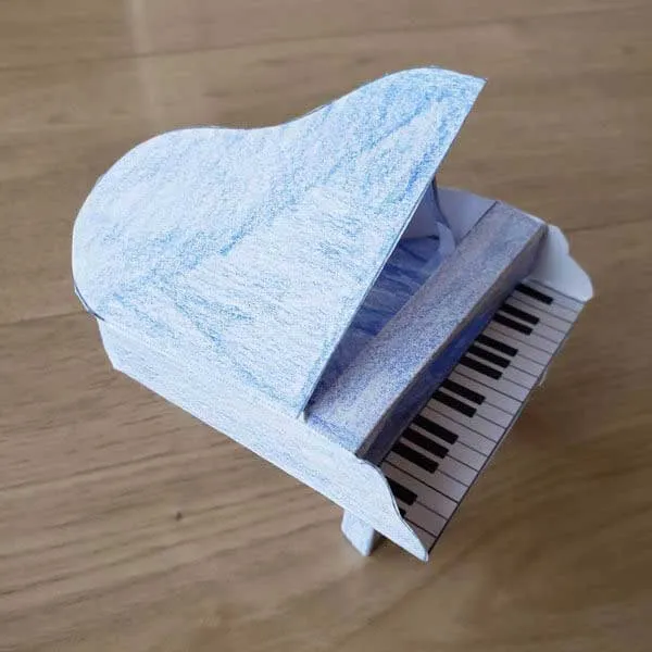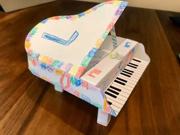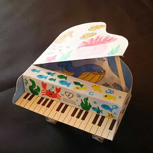 黒色をあらかじめ印刷してから作られたのですね!効率的な大人のやり方♪久々の工作いかがでしたでしょうか。アップライトピアノの工作もありますので、ぜひトライしてみてください!(スタッフ・シロクマより)