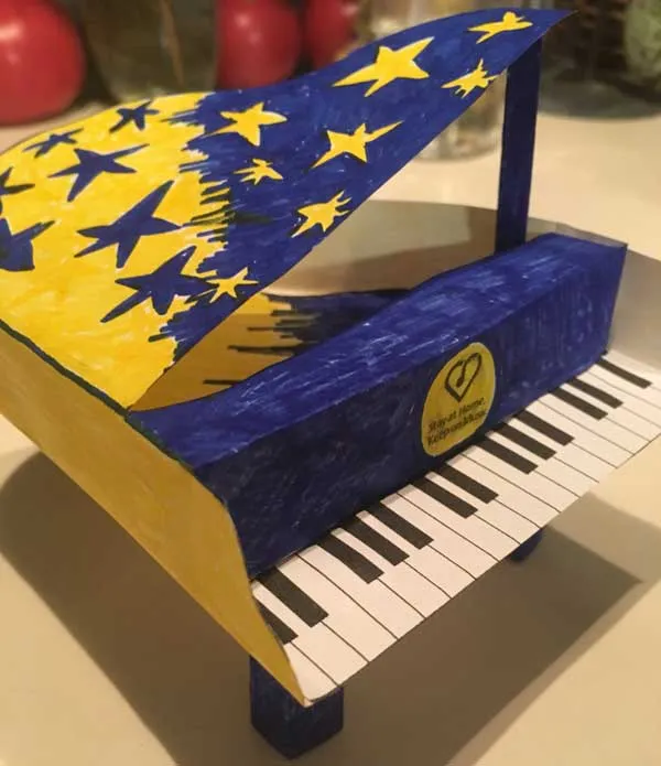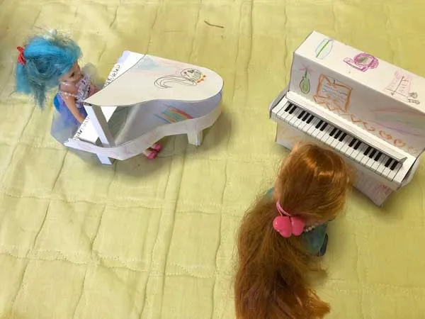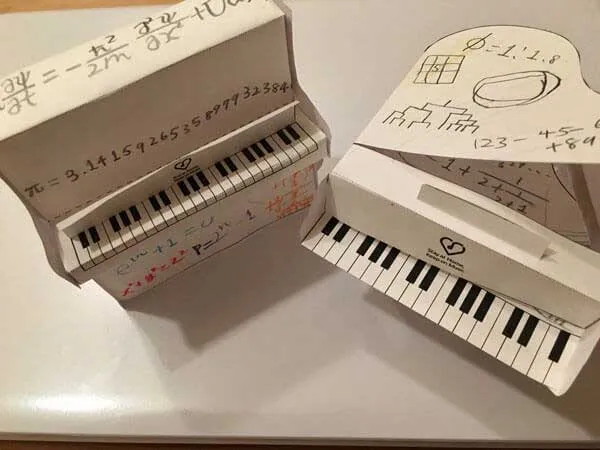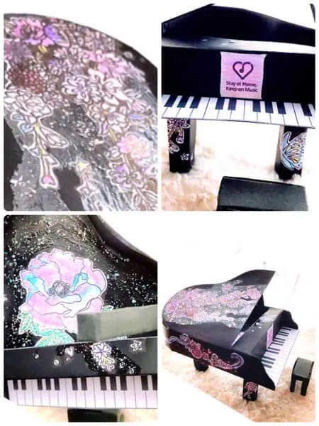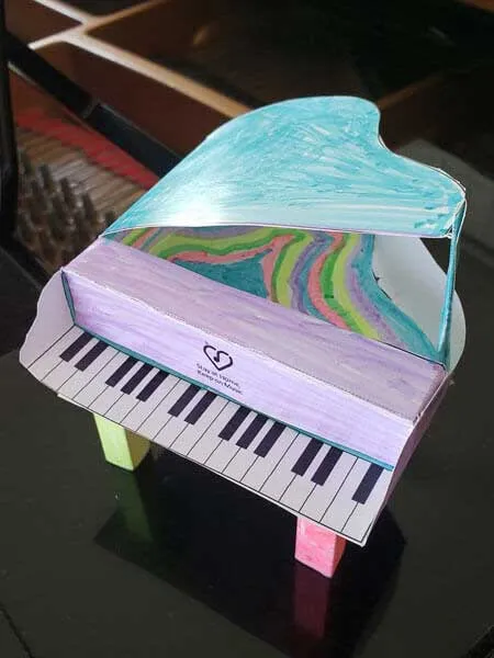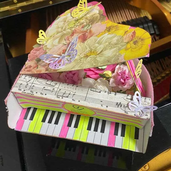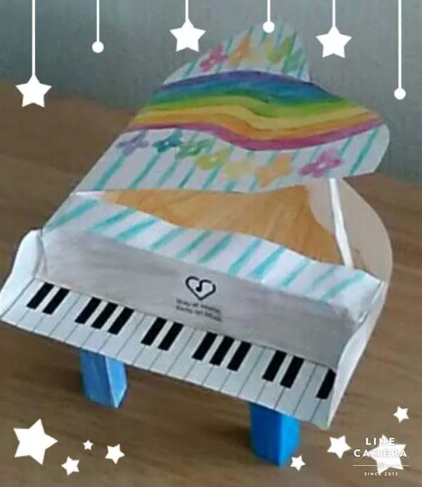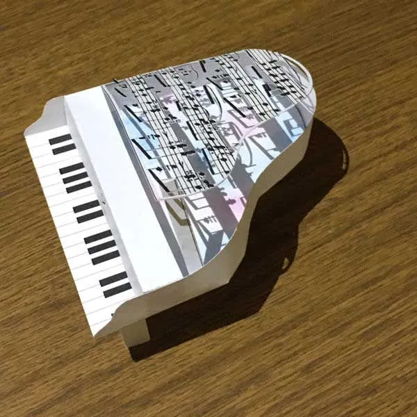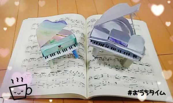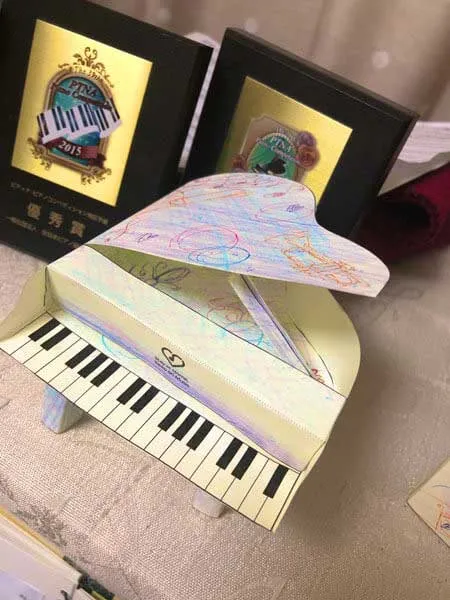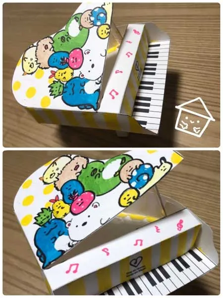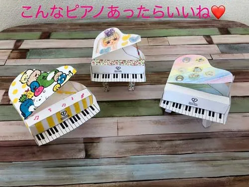 左のピアノ、グラデーションが素敵ですね。右には譜面台が!リアルなピアノにぐっと近づいてます。工夫して作ってくださり、とっても嬉しいです! (スタッフ・レッサーパンダより)