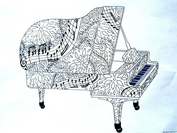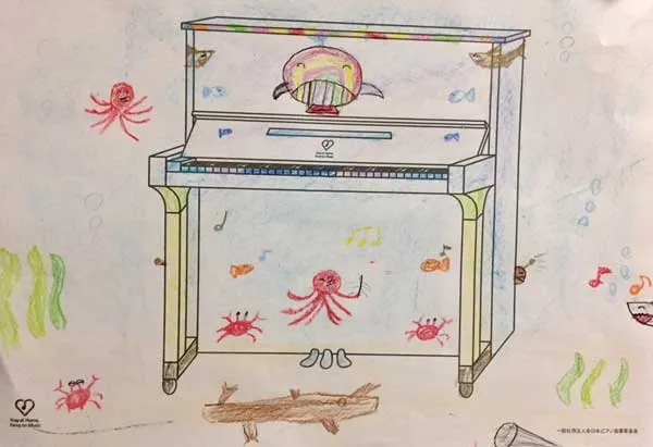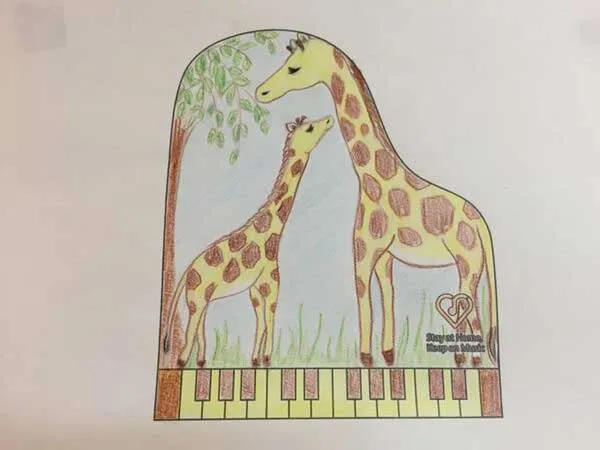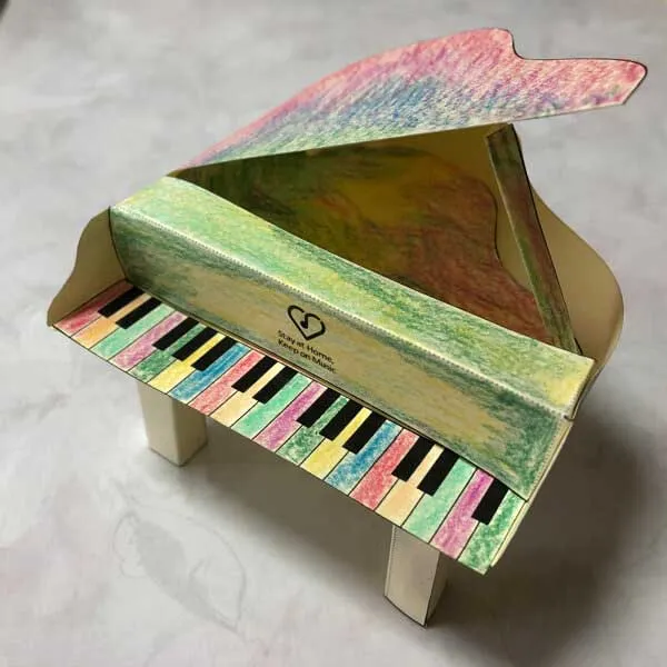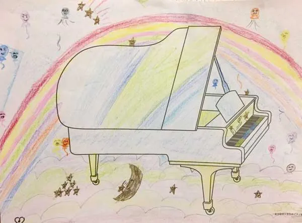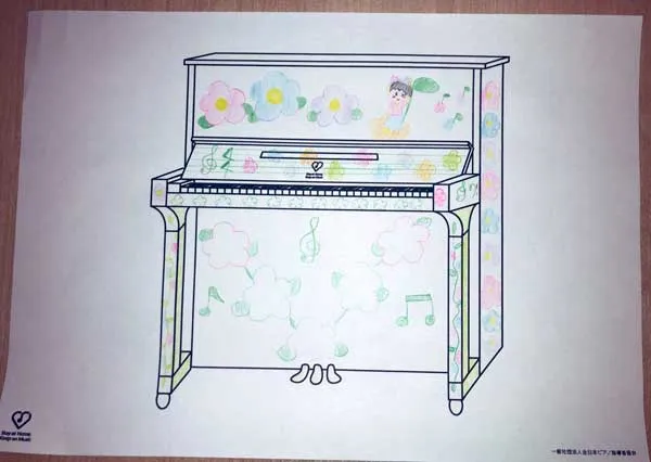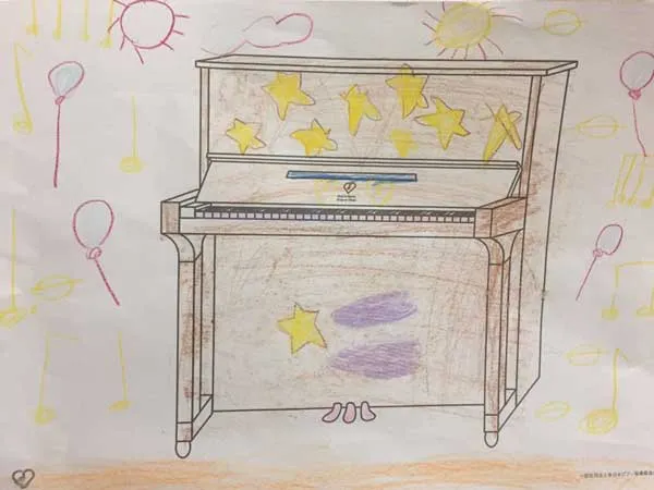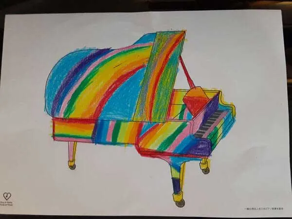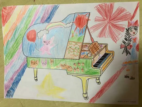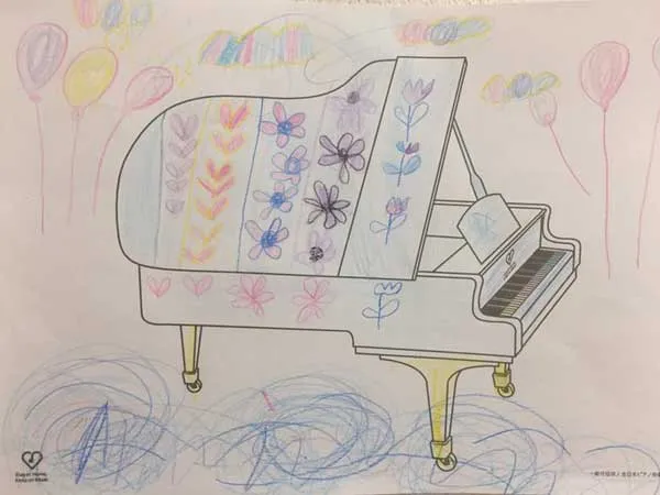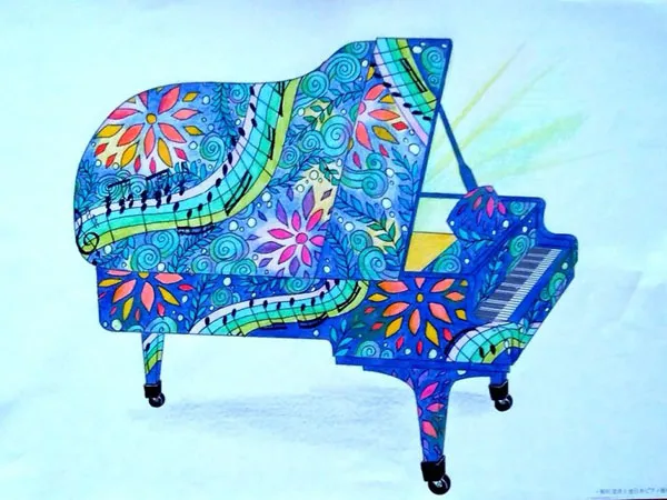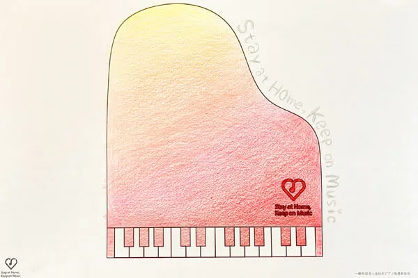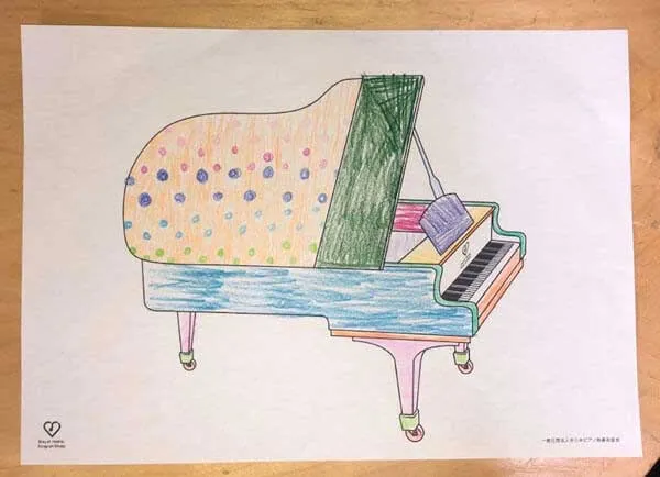 アップライトに続き、グランドピアノも制作ありがとうございます!デザインに統一感があって素敵です♪色鉛筆を薄くぬり重ねて、きれいな色が出ています。(スタッフ・ゾウより)