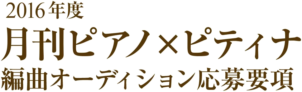 応募ジャンル ピアノソロアレンジ内容は、クラシカルなもの、ポピュラー(ポップス、ジャズ、ラテンなど)なもの、その他ジャンルを問わず。