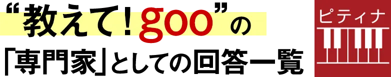 ピティナでは'教えて!goo'の「専門家」として、ピアノ学習の話題を中心としたQAに回答しています。もしピアノに関するご質問のある方がいらっしゃいましたら、'教えて!goo'でのご質問を利用していただくことも、お勧めします(ピティナが必ず回答をするわけではありませんので、ご了承くださいませ)。回答は、質問内容に応じて各分野に詳しい会員の方々に執筆していただくか、ご協力を頂きながら事務局で作成しています。