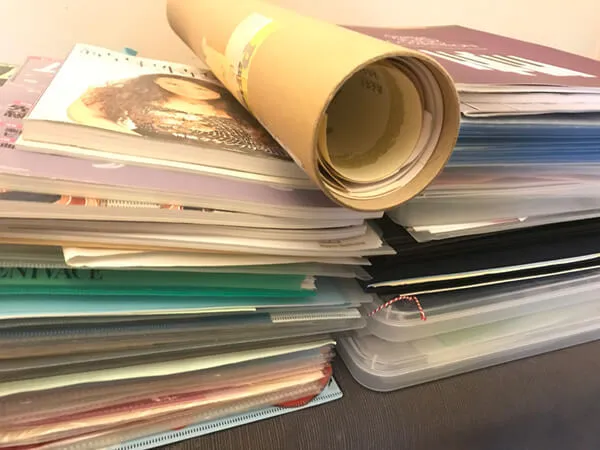 昨年8月より、過去15年間ほどの全ての資料を年代ごと、国ごとに仕分ける作業からスタートしました。渡米後はいつかアーティストビザに申請したいと考えていたので、実は、小さいものから全てファイリングしておいたのです!