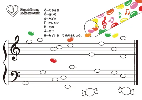 おうちで、たのしい「おんがく ぬりえ」をやってみましょう! たくさんの色で、あなただけのすてきな