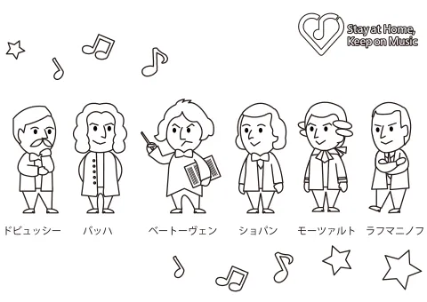 バッハさん、モーツァルトさん、たくさんの音楽 をのこしてくれた作曲家 たちをすてきにかざってみてね