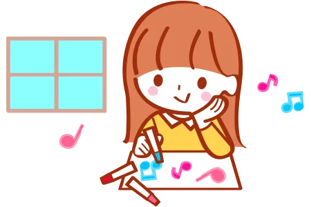 - 知っている曲や、テレビで流れてくる曲のリズムを書き出したり、旋律を探り弾きしたりして、曲当てクイズをしています。