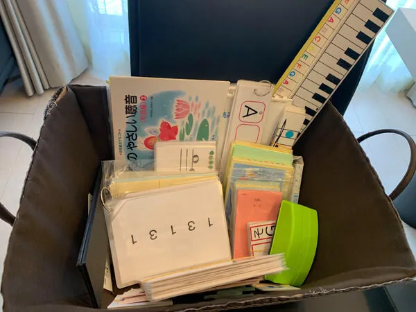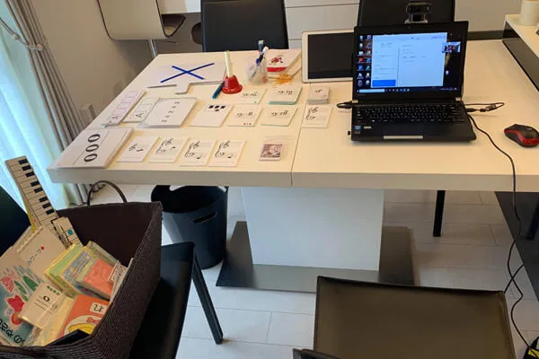間が出来てしまうと、子供の集中力や興味がそがれてしまうため、テンポよく行うことを心掛けています。使う教材類はすぐ出せるように並べておきます。カード類も順番が狂っていないように毎回入念にチェックしています。