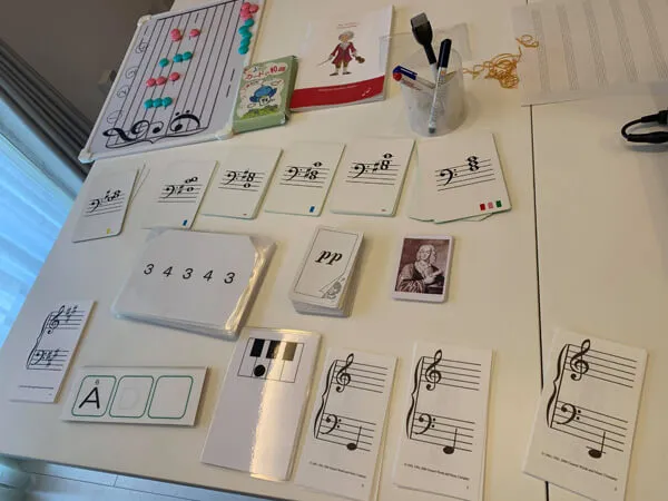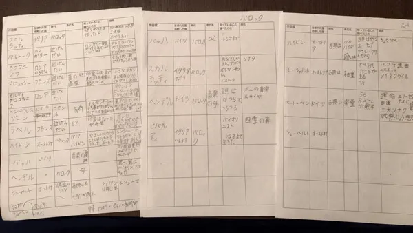 このような未曾有の事態がなければ、毎朝先生にお会いする事もなかったですし、音楽の基礎をじっくりと繰り返し学ぶ時間もなかったと思います。娘は教えていただいたことを復習するようになり、楽譜をひらいた時に「あ、○○の国の人だ、時代は…」と嬉しそうで、演奏へのモチベーションも上がっています。先生の問いに答えるために、手作りの一覧表を横に置いて開始時間前にiPadの前にチョコンと座っている姿は、見ていてとても微笑ましいです。