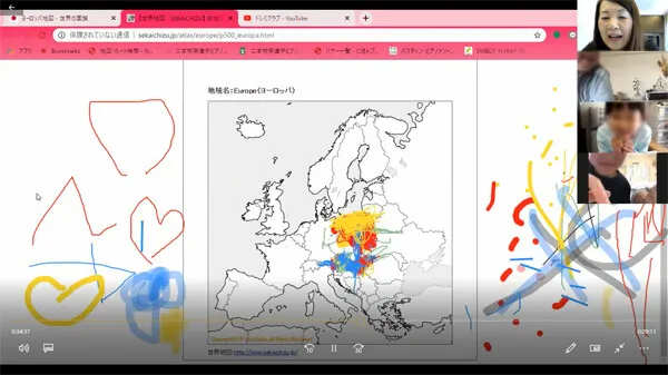 作曲家のエピソードに触れたときに子どもたちがとても興味を持ちました。その日は音源の準備をしていなかったので、咄嗟に私の口三味線で代表曲を伝えました。翌日はもっとよい音源を聴かせたいと、YouTubeで時代順に作曲家プレイリストを作り、パソコンの横にiPadを置きiPadから音源を流したものの「きこえませーーん」と言われガッカリ。その後zoomを触って色々研究し、今では音源共有もしながら進めることができています。