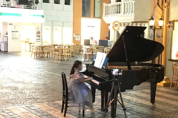いつもお仕事体験で遊びに来ていたキッザニアにグランドピアノが置かれ、本当にストリートピアノのような雰囲気で驚きました。