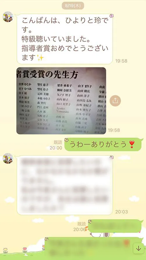 今年は私はサントリーホールで生で鑑賞することが叶い、その熱演に大変感銘を受けました。自宅で配信を観ていた生徒たちの中の数人が、配信で流れた指導者賞の中に私の名前を見つけて、スクリーンショットとともにお祝いのメッセージをLINEで送ってくれました。終演後に結果を待つ間も、「ホールいっぱいに音楽が溢れていたよ」「音が素晴らしくて泣いちゃったよ」「私のお母さんも泣いていました!」などと会場の様子や演奏の感想などを伝え合ったりして楽しみました。今年はホールにいても自宅にいても聴衆賞に投票できたので、「私は〇〇さんがよかったと思うので聴衆賞を投票したい」「先生は誰に投票しましたか?」「私はダントツ〇〇さん!」などと、遠くにいても生徒と一緒にドキドキを共有することができました。