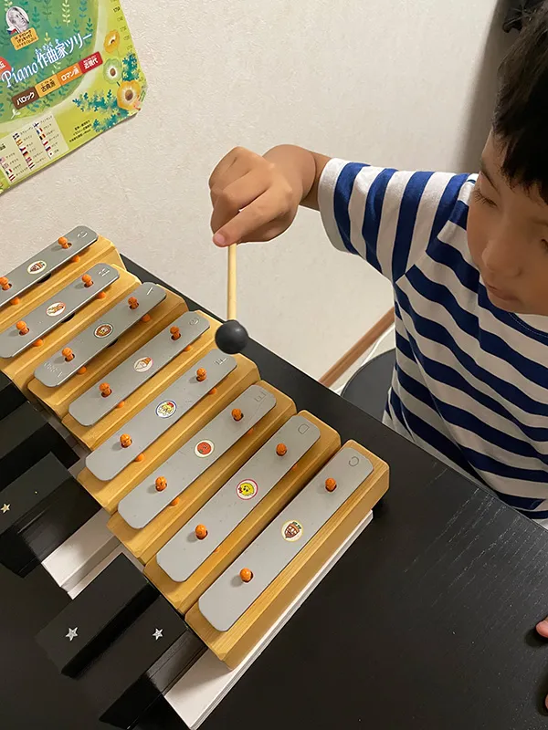 それまでは年長以上の子だけだったのだが、最近2歳の生徒が入会し、以降小さい子の問い合わせが増えました。「よいこのリトミック」「ゴーゴー・リトミック」「ぴよぴよピアノ」「よいこのピアノ」(遠藤 蓉子:著/サーベル社)などで研究中です。先生方のインスタグラムを見ていて「知育」が良さそうだと思ったので勉強会に入り、自分のレッスンに導入しました。その結果、子どもの集中力が上がりました。