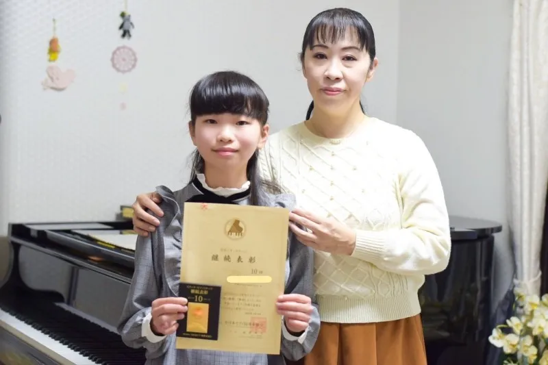 私の教室には、小学校高学年から中学生にあたる生徒さんが、現在18名通っていらっしゃいます。皆さん、受験や学校の部活や塾など忙しい中でもピアノを辞めず、うまく両立しながらステップやコンクール、グレードなどにも挑戦しています。今まで当たり前のようにそのように指導してきましたが、今回このお話をいただき、改めて、レッスンの内容以外で生徒さんのピアノ学習の継続につながっていると思われる取り組みを振り返ってみました。