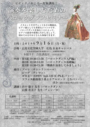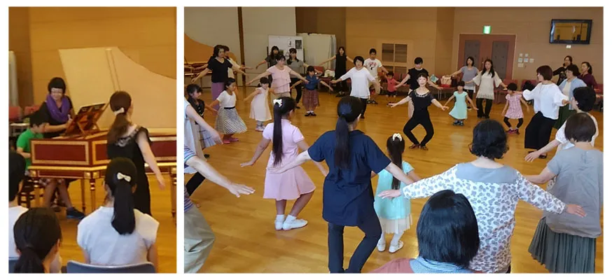 子どもが参加できるセミナーを開催するきっかけとなったのは、2017年の夏休みにバロックダンスの第一人者である浜中康子先生が広島へ来てくださることに決まったことです。子どもから大人の音楽愛好家まで、どんな方にも参加していただける「バロックダンスセミナー」を開催したいという願いが通じ、広島文化学園大学教授の末永雅子先生(正会員)が代表を務める「ピアノ指導者研究会」と共催で開催することができました。