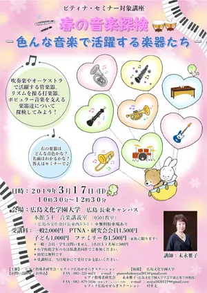 以前より、子どもたちにはピアノの演奏技術や知識だけでなく、作曲家や音楽史、ピアノ以外の楽器や音楽理論、作曲など、広く興味を持ってほしいと思っていましたが、私たちピアノ指導者には各地で多くのセミナーが開催されるのに、子どもが参加できるセミナーはとても少ないことを残念に思っていました。