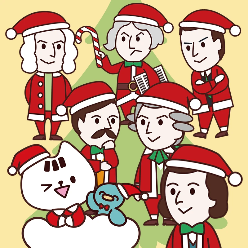クリスマスはもうすぐ!ぴてぃにゃんや作曲家のモチーフのクリスマス素材をまとめてご紹介。 おうちや教室、クリスマス会、オンライン・コミュニケーションと、様々な場面でご活用ください。