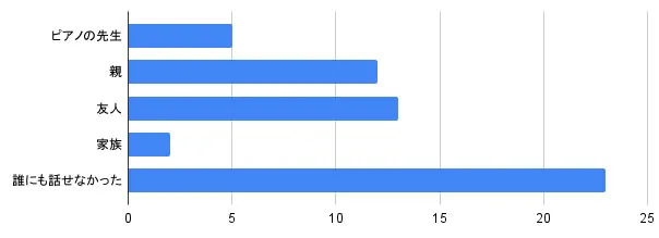 ピアノの先生と生理の問題を話したことがある方は、15%ほど。「アンケート結果その1」のように、ピアノの練習やレッスン、本番への生理による影響はこれだけ多かったにもかかわらず、それを実際にピアノ教室で話し合われた方は、非常に少ないことが分かりました。一方で、生徒と生理の話題をするように心掛けているピアノ教室もありました。