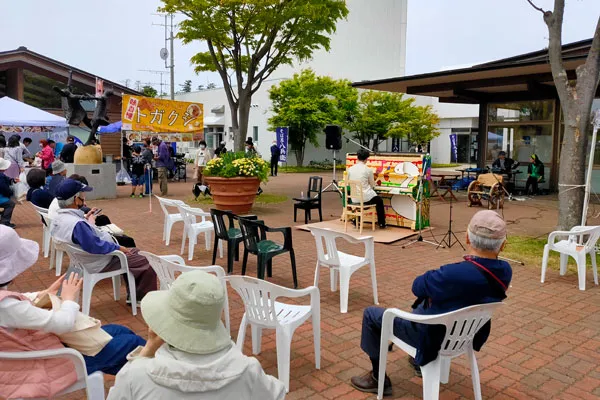 そうなんです。アクセサリーなどのハンドメイド品やコーヒーなどの販売、マッサージや占い、バルーンアートなど様々なお店が集まり、その真ん中にストリートピアノがあって、買い物したり飲食したりしながら聴いたり、弾いたり。弾く人も聴く人も買い物をする人も気軽に楽しめ、その場に滞在しやすくなるので、音楽と買い物や飲食とは相性がいいようです。