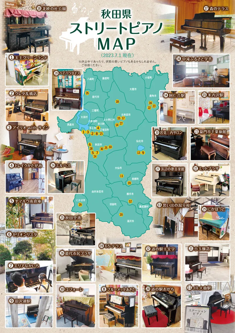 秋田県にはどのくらいストリートピアノがあるのでしょうか