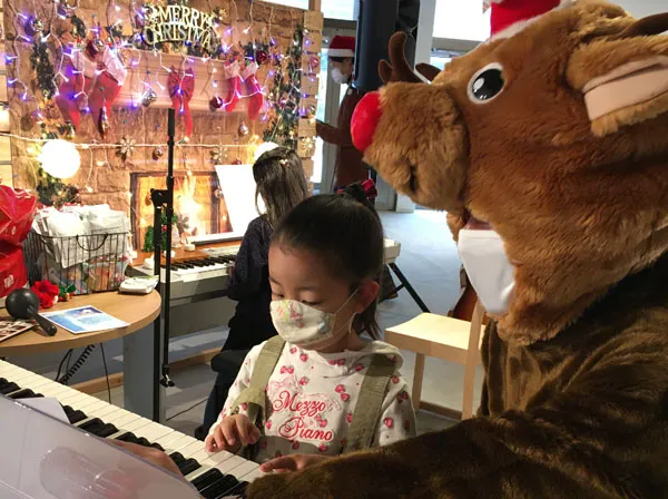 ですから、色々な人にピアノを弾いてみて欲しくて、リレーコンサートとあわせて「はじめてさん対象のワークショップ」を行ったこともあります。クリスマスのイベントの時には、指1本で「We wish you a merry Christmas」を弾けるように教えてあげて、それに簡単な伴奏やギターなどをつけてあげました。指1本でも「この曲が弾けた!」「音楽になった!」という達成感の喜びは大きいのだなと改めて感じました。