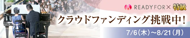 特級では、未来のピアニストたちへの応援の輪を広げるため、クラウドファンディングに挑戦しております。子どもたちの憧れのステージを、皆様と共に育てていきたいと思っております。ご支援をどうぞよろしくお願いいたします。