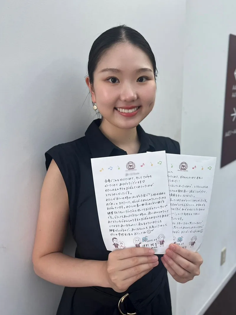 ピティナ特級2024を通して、たくさんの子どもたちから温かなお手紙をいただきました。入賞者コンサートで各地を訪れた際にも、直筆のお手紙をいただくことがあり、その一つ一つが私の心に深く残っています。デジタルが主流の時代において、手書きの文字から伝わる気持ちには、やはり特別な嬉しさがあります。とくに、ファイナルの演奏の様子を絵に描いてくれた子どもたちの作品には、音楽への愛情とともに、驚くほど豊かな感性や表現力を感じ、胸が熱くなりました。この企画の素晴らしいところは、私たちも直筆でお返事を書くことができる点です。一枚一枚、感謝を込めて丁寧にお返事を書かせていただきましたが、あらためて「伝えること」の大切さと、それに伴うエネルギーを実感しました。子どもたちも同じように、時間をかけて心を込めて書いてくれたのだと思うと、自然と背筋が伸びる思いがしました。「憧れです」と綴ってくれた言葉のひとつひとつに応えられるよう、これからも誠実に音楽と向き合い続けたいと思います。子どもたちのまっすぐな気持ちに触れることができたこの企画は、演奏者としての原点を改めて思い出させてくれる、かけがえのない機会となりました。心から感謝しています。