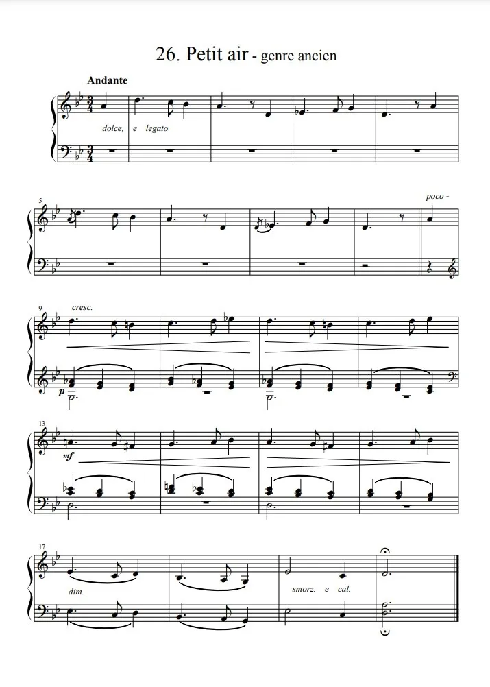 さて、フランス系の機能和声脱却手段のひとつが「教会旋法」で、これはフォーレが確立した手法だとしばしば考えられているが、実は――というようなことはこの連載の第4回でもちらっと触れました。今回の「古い様式の小さな歌」こそが、アルカンがフォーレより先にその手法を用いた実例です。調性的にはト短調として並べられているこの曲、実はト短調ではなくて二音を終止音とするフリギア旋法という音階で成り立っている。それが独特の古めかしさと、古めかしさ故の斬新さを生んでいるのですね。