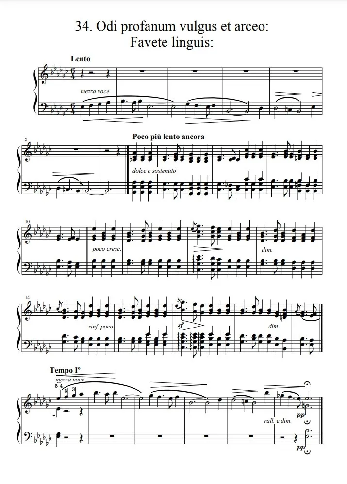 今回の曲タイトルは非常に変わっています。「私は衆愚を嫌い、彼らを遠ざける/静粛に!」......これはフランス語ではなくラテン語であり、古い警句から引用された言葉。「衆愚を~」の行を引いたのは、何かアルカン自身の胸に響くところがあってのことではないかと想像してしまいます。「静粛に!」の方は、もともと儀式の際に用いられる掛け声だったらしい。隠遁する自らの孤高の精神性を少し斜に構えて表現した音楽......そう解釈してしまいたくなるのは人情というものでしょう。