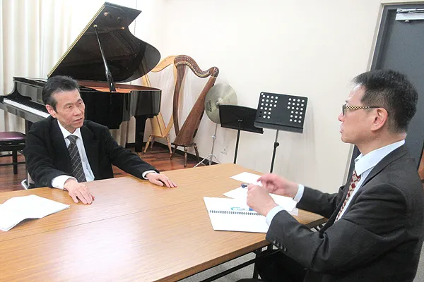 と田口さん。しかし、楽器店は音楽教室も併設していて、地域の生徒集め、という点では街の音楽教室とライバル関係にあるはずだ。その点どうなのか?