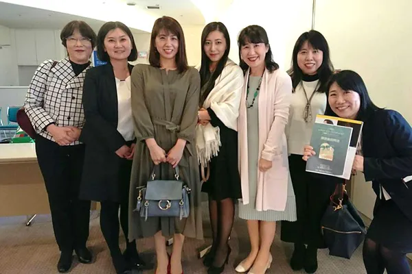 毎年3月1日に本部が主催する東京でのコンペ課題曲説明会にて、広島中央支部の先生方と(向かって一番右が中津美和さん)
