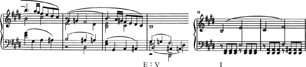 譜例1 ピアノ・ソナタ作品14第1番 第1楽章 第10-14小節