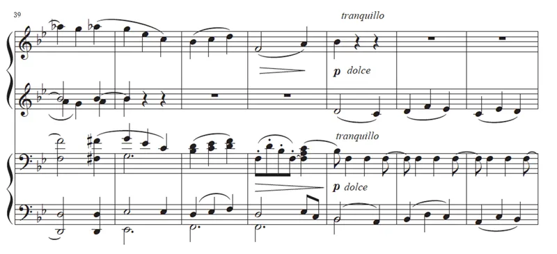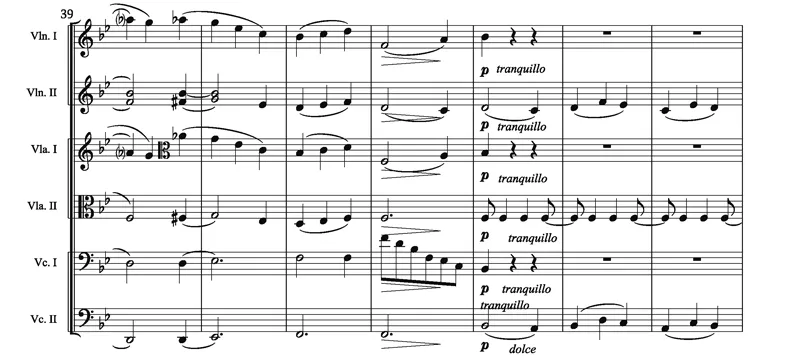 譜例2 第1楽章 第39小節~ 弦楽六重奏曲