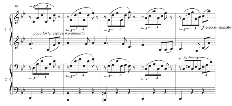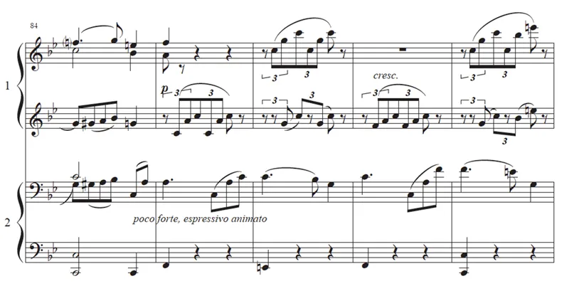 譜例3 第1楽章 第84小節~ 弦楽六重奏曲