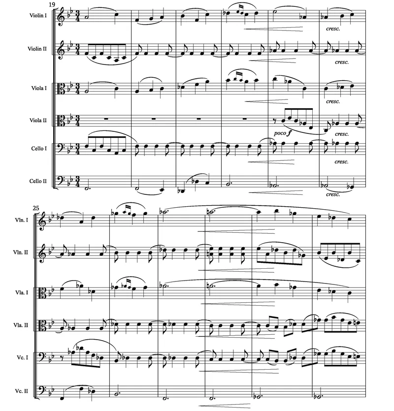 譜例1 第1楽章 第19小節~ 弦楽六重奏曲