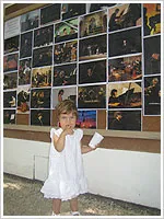 公演の写真や掲載紙が掲示板に貼り重ねられていく.作業はボランティア・スタッフ.中には各地の音楽祭でボランティアを務めるベテランも.