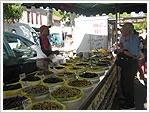 土曜日の午前中にたつ村のマルシェ.新鮮なオリーブが並ぶ