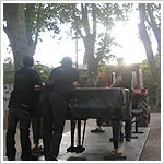 「ダダダ...」という音に振り返ると,ピアノがトラクターで運ばれてゆく最中