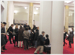 その一環として、ブーレーズ指揮によるストラヴィンスキー『火の鳥』のマスタークラス(12月1日サル・プレイエル)とコンサート(12月2日ルーブル美術館ピラミッド下)が行われました。マスタークラスは一般聴衆のほか、13~18歳の中高生800名でホールは満席、翌2日は前日に入りきれなかった200名の中高生を含む1000名以上の聴衆が、ガラス天井のルーブル美術館ホワイエで音楽を堪能しました(2日コンサートは、http://www.medici.tv/で視聴可能)。