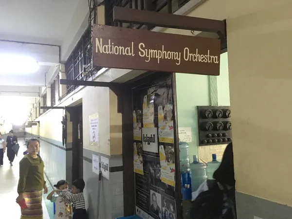 創立は2001年、長く活動が停滞していたが、2014年に音楽監督に山本祐ノ介氏を迎え、また国際交流基金の助成などを得ることによって活動を活発化させてきた。現在の団員数は65名(内非正規5名)で、第1ヴァイオリン12名によるフル編成。団員には給与の他、住居も提供されているので、それなりのステータスが与えられている。弦奏者の多くは国立文化芸術大学出身者で、管楽器はマーチングバンドなどの出身者が多いそうだ。ただ、演奏の機会は年3回の定期演奏会に加えて、TV音楽番組の出演が年6回程度ということなので、決して多いとは言えない。今後は、活動の数と質をどのように確保していくのかが問われてくるのではないだろうか。私の持論として、オーケストラは(ウィーン・フィル、ベルリン・フィル、ニューヨーク・フィルのように)その国や都市の音楽文化を代表する「顔」である。ミャンマーにもそうした「顔」が再活動を始めていることに大きな意味を感じるのは私だけではないだろう。