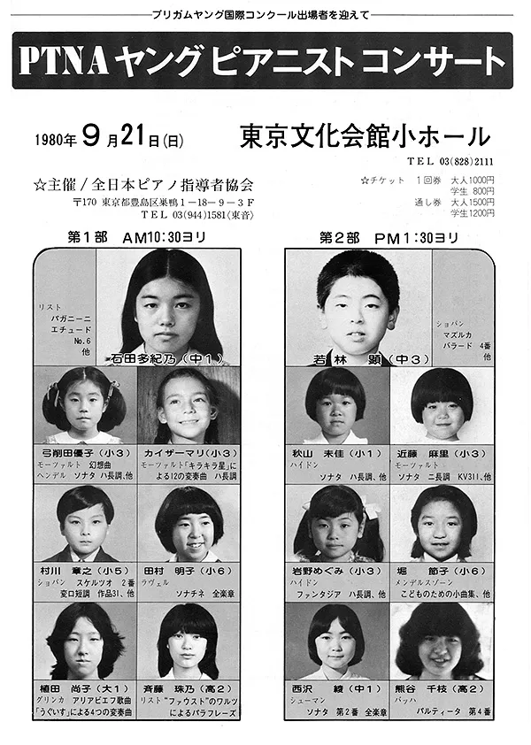 突破口を求めてがむしゃらに ピアノコンクールの萌芽期ピティナのコンクールが始まった1977年、ピアノのコンクールと言えば「日本音楽コンクール」が唯一に近い存在だった。戦前から現在に至る長い歴史の中で、有望な演奏家たちを多数世に送り出してきた、日本最高峰のコンクールである。しかしピアノが一般に普及するようになり脚注1、ピアノ教育に熱い視線が注がれるようになると、次第に状況が変化し始める。初級中級の学習者の発表、勉強の場が期待されるようなり、それに敏感に反応した楽器店が、地元に密着した子ども向けの小規模コンクールを企画し始めたのである。ピティナのコンクールは、そうしたコンクールが芽吹いていく時代の先駆でもあった。「小さいコンクールもまだ少なく、たとえあっても課題曲、自由曲の意図が明確ではなくて、みんな手探り状態でした。ピティナの4期の課題曲は、そんな中で素晴らしかった」と金子は振り返る。