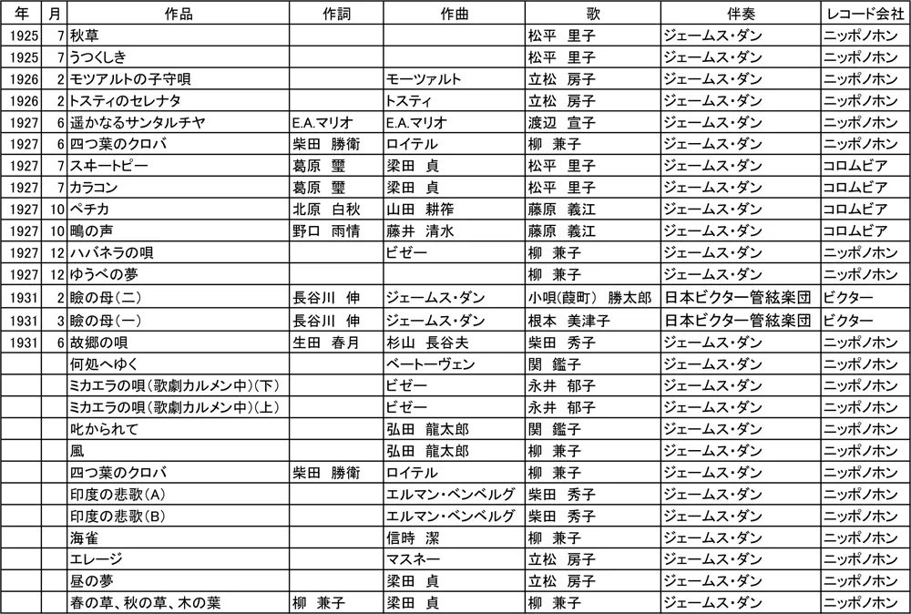 ジェームスがレコード製作に携わったのは、この時期だった。主に立花房子、柳兼子ら声楽家のピアノ伴奏だが、何故彼女たちがレコード録音に参加したのかについて、柳が宮澤縦一に語っている。