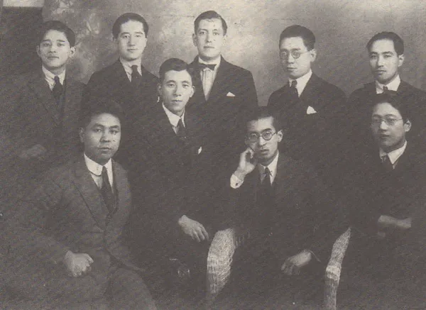 前列左から、真篠俊雄、鈴木鎮一、近衛秀麿、池譲