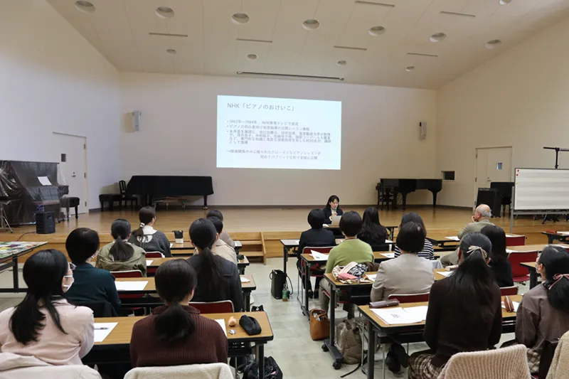 去る2023年11月、岡山県音楽教育学会にて「ピアノ教育の向上を目指して」−NHK「ピアノのおけいこ」の講師が示した指導法とは−と題して講演を行いました。島根大学の藤井浩基先生、岡山大学の長岡功先生が拙連載をご覧になり、学会員に向けて「ピアノのおけいこ」についての講演の依頼を頂戴した次第です。これまで「ピアノのおけいこ」の研究に関して、多くの一次資料やピティナ会員へのアンケート実施を通じて調査が進む一方で、現場のピアノの先生に研究成果を還元する機会がありませんでしたので、お役に立てる素晴らしい機会と馳せ参じました。