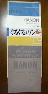 写真一番上は、ご存知全音の『全訳ハノンピアノ教本』。一番下は、昭和21年10月に好樂社から出版された『ハノンピアノ教本』第一巻(全三巻のうち)。『ハノン』のいろいろ