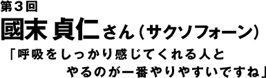 ピアノは優れたアンサンブル楽器です。ピアニストの可能性を広げるアンサンブル力とは何かを楽器奏者、歌手、ピアニストのインタビューを通して探って行きます。第3回目は学校クラスコンサートでもご協力頂いているサクソフォーン奏者の國末貞仁さんにお話を伺いました