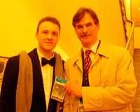 「自分の言いたいことが伝わるか心配でしたが、今日は楽しんで演奏することができました。聴衆の皆さんも一人一人のアーティストを尊重してくれていると思います」。写真:エリック・ズベーさんと、スタインウェイ社のゲリー氏。