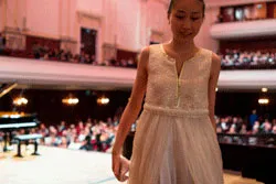 エチュードOp.25-6は軽やかに滑るように、Op.10-8は左手のリズムが曲全体に軽快な躍動感を与え、旋律もほんのりと表情を感じさせる。そのバランスにセンスが光る。ノクターンOp.48-1は伸びやかな明るい音で情熱的に歌う。バラード1番は響きの創り方にやや甘い点があったが、第2主題の旋律の運び方などに独自の感性が生かされていた。 ※使用ピアノ:スタインウェイ(photo:Wojciech Grzędziński NIFC)