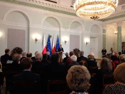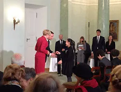 大統領に続き、審査員団を代表としてジョン・リンク先生(ショパン研究者、英ケンブリッジ大教授)がスピーチを行い、「ショパンの音楽は、ポーランドの国家財産であると同時に、われわれ全世界の人々に受け継がれているものです」と述べられました。また大統領より、審査員とファイナリストに記念品が贈呈されました。