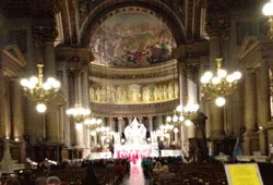 マドレーヌ寺院はショパンの葬儀が行われた場所(写真右)。ちょうど10月17日ショパン命日には、ワルシャワの聖十字架教会でモーツァルトのレクイエムに聴いたばかりだった。それに思いを馳せながら、寺院に響き渡る讃美歌を聴いた。