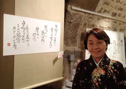 塚口裕子さんの本業はパティシエだが、その傍ら書道をたしなみ、また石巻市に船を贈るボランティア活動をしているそうだ(思風丸寄金の会)。この隣の部屋では、石巻市を中心に東日本大震災被災写真展も同時開催された。